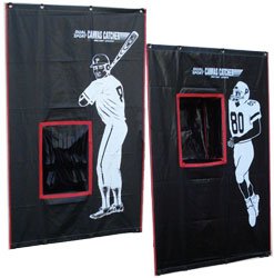 The Cimarron 2-Sport Catcher Vinyl Backstop is ideal for practicing pitching, or general throwing accuracy. The 2-Sports Catcher can also be used as a target/catcher inside batting cages.Please note this is a backstop only with grommets to hang from a cage or other area